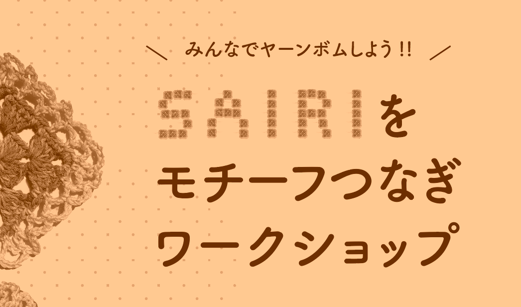 SAIRIオリジナル糸“カイト”を使ってみんなで小さなかぎ針編みモチーフを編みませんか?SAIRI20周年を記念して、店内を飾るモチーフつなぎの「SAIRIタペストリー」を作りたいと考えております。タペストリーの材料となる小さなモチーフの募集にあたり、モチーフの編み方とつなぎ方のワークショップを開催いたします。皆様のご参加をお待ちしております!