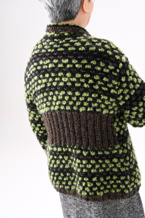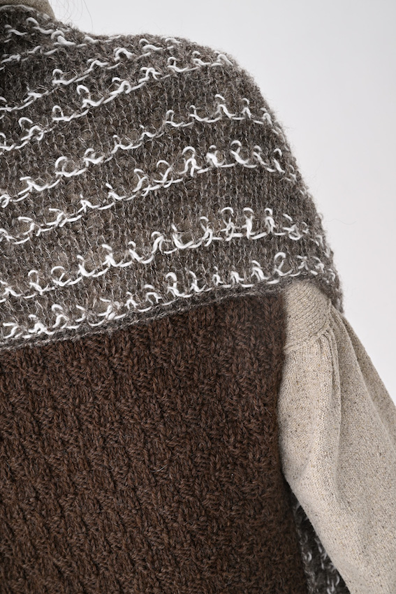 ▲ワークショップで編む「波動柄ショールベスト」